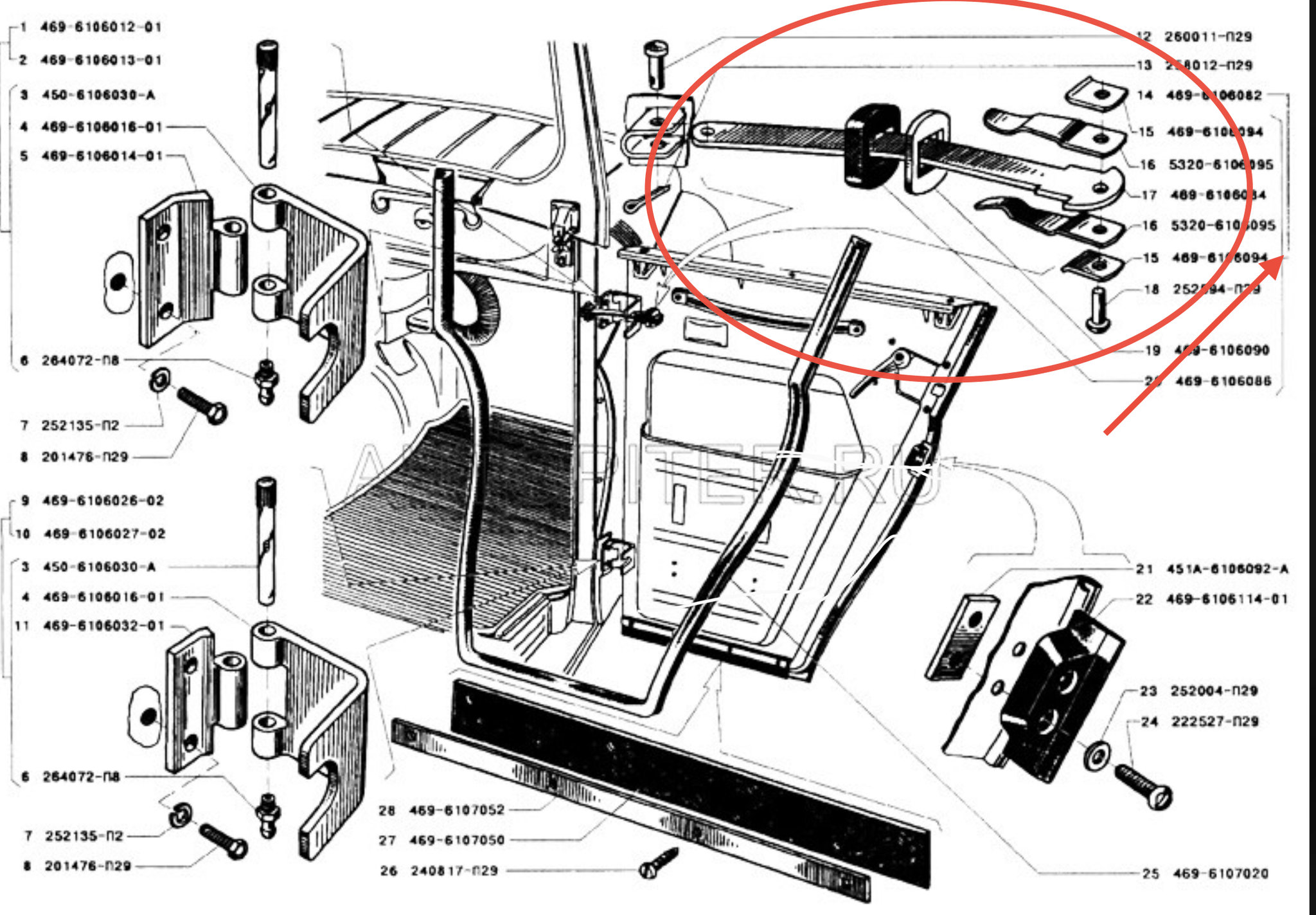 See uksepiiraja sobib Hunter & 469 mudelitele ja kontrollib, kui kaugele eesmine uks avaneb, vältides liigset avanemist, mis võib kahjustada hinge, poritiibu või ukse korpust. See hoiab ust stabiilsena tuule või nõlvadel, võimaldades turvalist sisenemist ja väljumist ning taastab täpsed "peatus" asendid, mida ootate hästi hooldatud klassikaliselt UAZ-ilt.