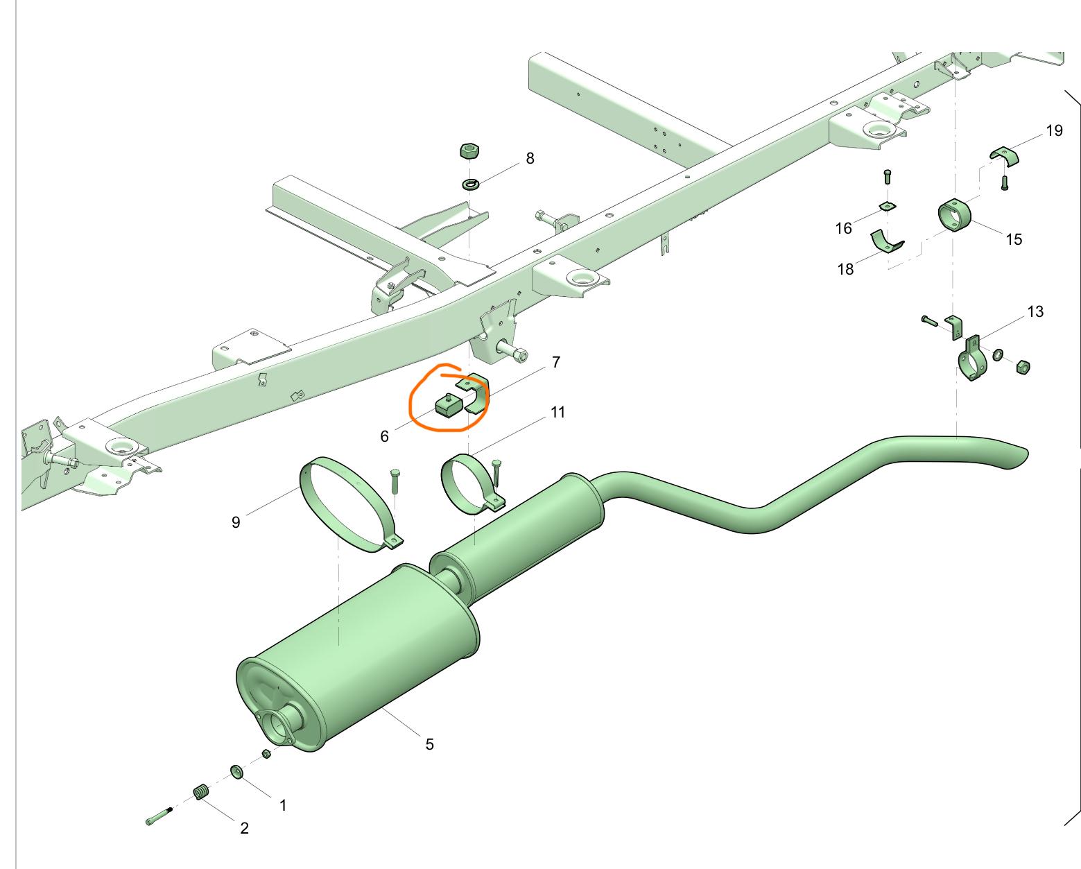 Mounting bracket exhaust – Bukhanka Modern (2.7L) & Hunter/469 (2.7L) – OEM 045200120305703